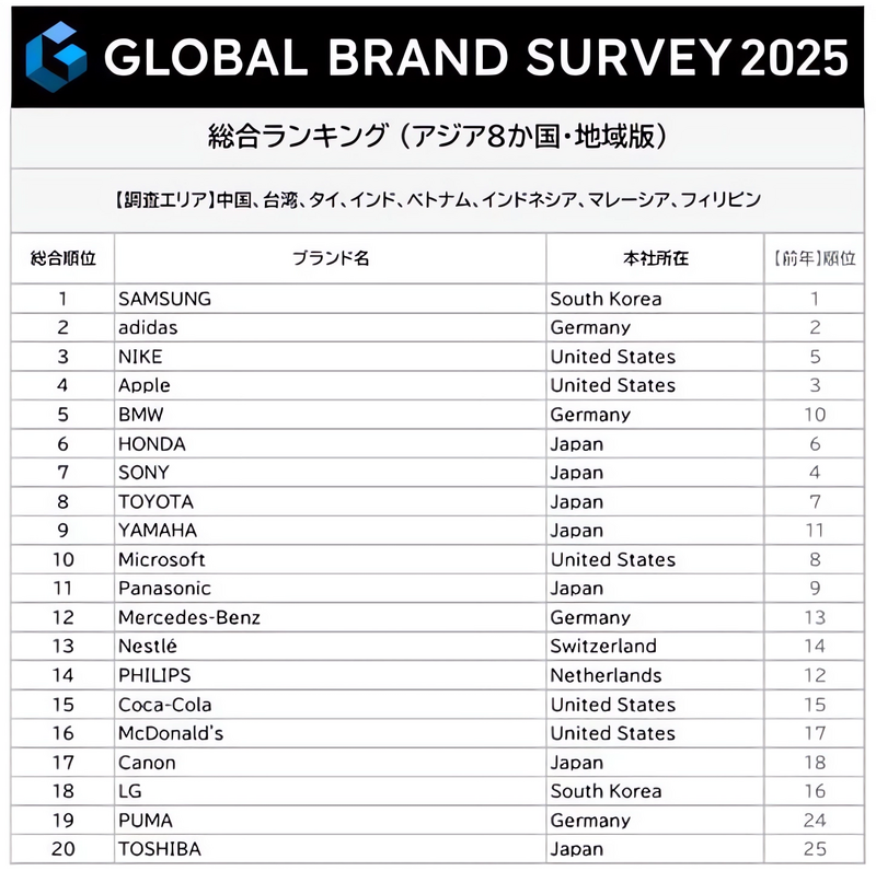 ※出典:日経リサーチ GLOBAL BRAND SURVEY 2025 総合ランキング https://service.nikkei-r.co.jp/service/gbs/brand-ranking