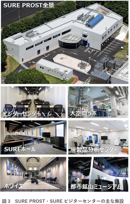 この他、SURE PROSTに隣接する既存の3拠点(CEDEST、RECST、LATEST)と連動して、戦略的都市鉱山研究拠点(SURE TranSortics Village)を構成します。国家プロジェクトによる新規技術開発から、開発技術の普及、技術者・研究者教育まで、日本の都市鉱山技術の開発・普及拠点として、総合的な活動を行います。